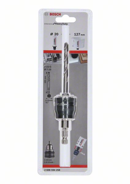 Das Power Change Plus System bietet größere Robustheit und Präzision als sein Vorgänger. Sein verstärkter Schaft sorgt für bessere Toleranzen, erzeugt weniger Spiel und größere Genauigkeit. Außerdem ermöglicht es dank des Zentrierbohrers eine bessere Führung. Das einzigartige schlüssellose System erfordert nur einen einfachen Klick, um die Lochsäge zu entfernen, wodurch ein schneller und einfacher Auswurf des Bohrkerns möglich ist. Dieses System ist als schlüssellose Verbindung zwischen Elektrowerkzeugen und Lochsägen zu verwenden.