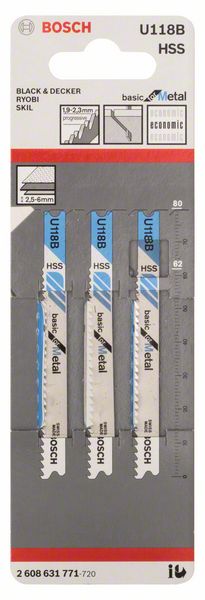 Stichsägeblatt U 118 B Basic for Metal, 3er-Pack 2608631771
