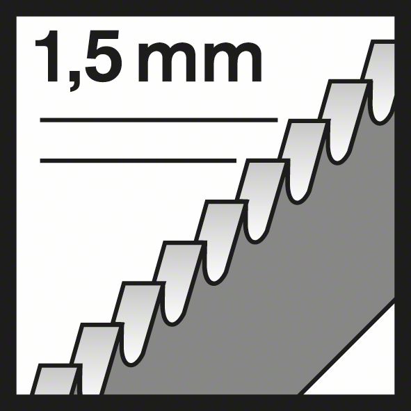 Das T 118 EOF Flexible for Metal Stichsägeblatt ist bruchfest bei Kurvenschnitten in Metall. Die gefrästen, gewellten Zähne sind zum Schneiden von Metallblech konzipiert. Schmales Blatt ermöglicht zudem schnelle Kurven beim Schneiden. Die Zahnleiste aus gehärtetem HSS (Hochgeschwindigkeitsstahl) und BIM (Bimetall) ist mit hochelastischem HCS (Kohlenstoffstahl) verstärkt, wodurch das Bruchrisiko reduziert wird, und sowohl genügend Festigkeit als auch Flexibilität geboten werden, die beide erforderlich sind, um perforiertes Metallblech aus Stahl (Standard-Stärke) zu schneiden. Es ist mit einer feinen Zahnteilung (1,5 mm) ausgestattet, um dünnes Metall mit einer Dicke von 1,5-4 mm zu schneiden.