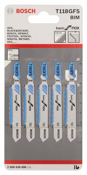 Stichsägeblatt T 118 GFS Basic for Stainless Steel, 5er-Pack 2608636496