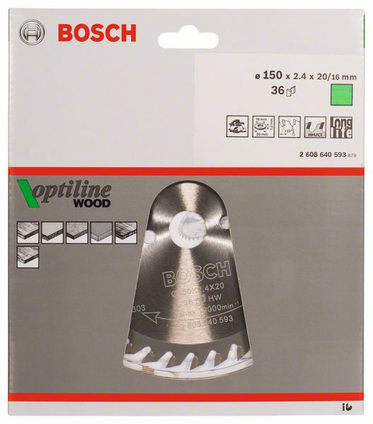 Kreissägeblatt Optiline Wood für Handkreissägen, 150 x 20/16 x 2,4 mm, 36 2608640593