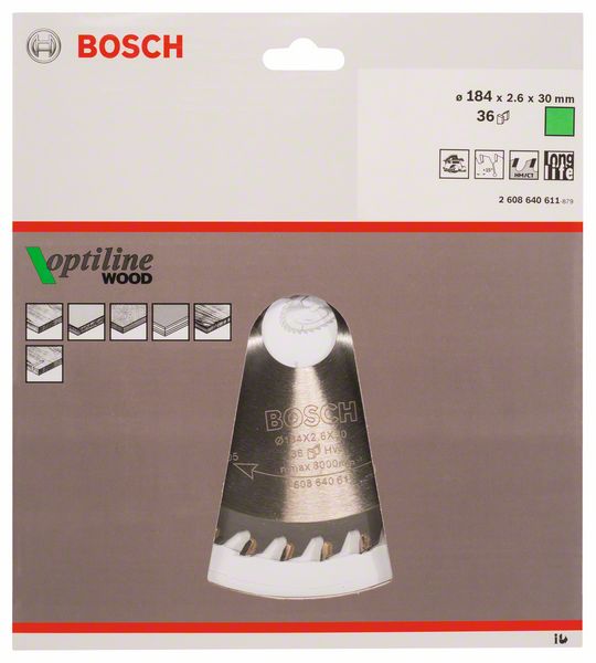 Kreissägeblatt Optiline Wood für Handkreissägen, 184 x 30 x 2,6 mm, 36 2608640611