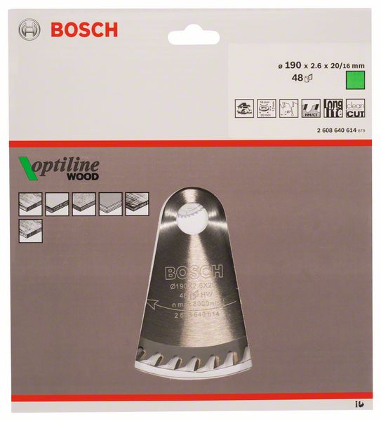 Kreissägeblatt Optiline Wood für Handkreissägen, 190 x 20/16 x 2,6 mm, 48 2608640614