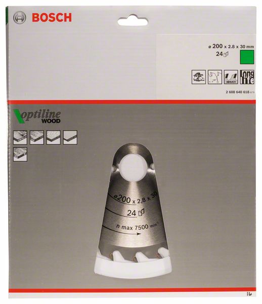 Kreissägeblatt Optiline Wood für Handkreissägen, 200 x 30 x 2,8 mm, 24 2608640618