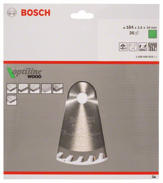 Kreissägeblatt Optiline Wood für Handkreissägen, 184 x 16 x 2,6 mm, 36 2608640818