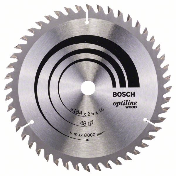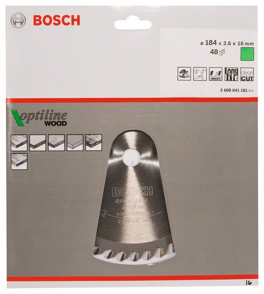 Kreissägeblatt Optiline Wood für Handkreissägen, 184 x 16 x 2,6 mm, 48 2608641181