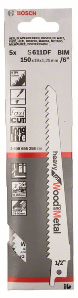 Säbelsägeblatt S 611 DF, Heavy for Wood and Metal, 5er-Pack 2608656258