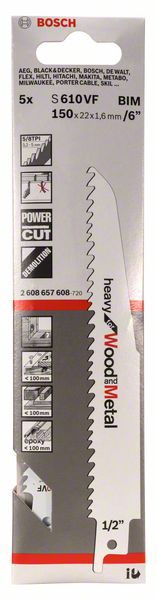 Säbelsägeblatt S 610 VF, Heavy for Wood and Metal, 5er-Pack 2608657608