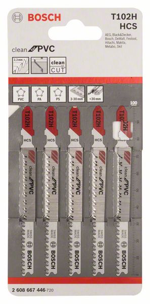 Stichsägeblatt T 102 H Clean for PVC, 5er-Pack 2608667446