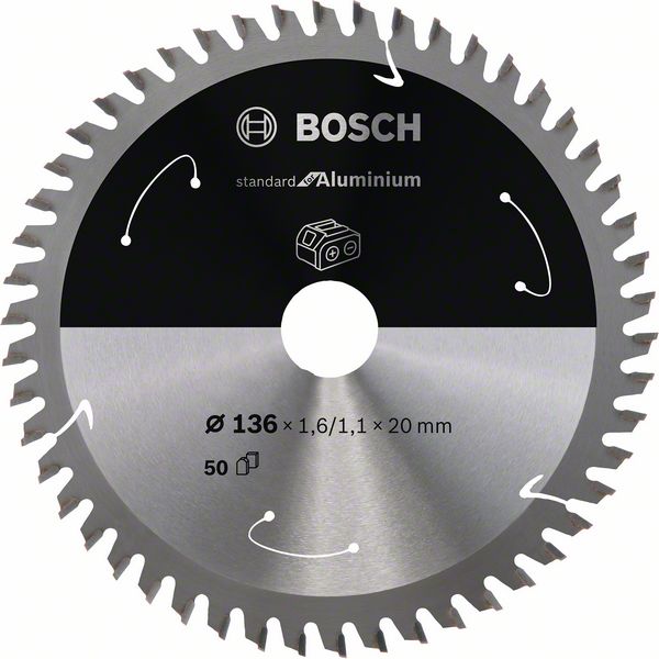 Akku-Kreissägeblatt Standard for Aluminium, 136 x 1,6/1,1 x 20, 50 Zähne 2608837754