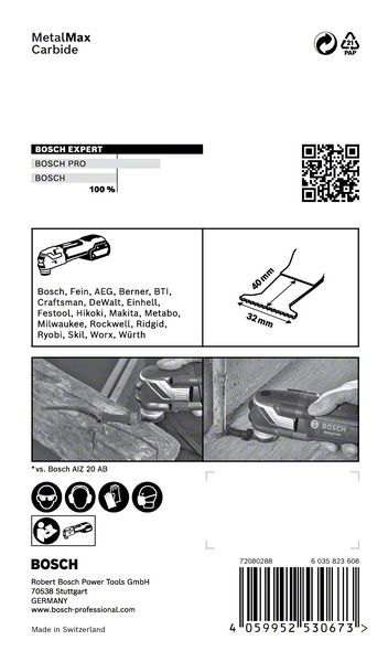 Herausragende Lebensdauer in harten und zähen Metallen! Zusätzliche Beschichtung macht Carbide widerstandsfähiger! Wenn gehärtete Schrauben rosten oder auf andere Weise stecken bleiben, besteht die einzige Option darin, sie flach an der Oberfläche abzuschneiden. Der EXPERT MetalMax macht auch in gehärtetem Metall einen perfekten bündigen Schnitt. Mit seiner herausragenden Langlebigkeit ist es das perfekte Zubehör für Handwerker, die harte Materialien mit einem Multifunktionswerkzeug schneiden möchten. Du hast gesehen, wie mühelos das Multifunktionswerkzeug in und durch Holz sägen kann: Mit dem Bosch EXPERT MetalMax Blatt für Multifunktionswerkzeuge kann Metall genauso zersägt werden. Es sägt sogar mühelos gehärtete Fensterschrauben und Armierungen. Überragende Lebensdauer dank Bosch Carbide Technology.