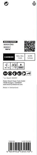 Herausragende Lebensdauer in dünnem, zähem Metall! Extrafeine Zähne schneiden sehr dünnes Material problemlos. Das Schneiden von dünnem Blech und dünnwandigen Rohren ist eine schwierige Aufgabe. Mit einem guten Säbelsägeblatt ist dies allerdings möglich. Die wirklichen Probleme beginnen, wenn du Edelstahl schneiden musst. Dieser zähe, hochlegierte Stahl stellt Bau- oder Renovierungsarbeiter vor Schwierigkeiten und zerstört die Blätter häufig. Dank der Bosch Carbide Technology gehören diese Probleme der Vergangenheit an. Das Bosch EXPERT ‘Thin Tough Metal’ Säbelsägeblatt eignet sich ideal für Metallarbeiter, Klempner, Installateure und Renovierer. Es erledigt nicht nur Arbeiten, die bisher so gut wie unmöglich waren, sondern bietet auch eine außergewöhnliche Lebensdauer. Überragende Lebensdauer dank Bosch Carbide Technology.