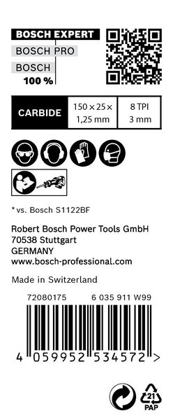 Herausragende Lebensdauer in dickem, zähem Metall! Breiter Körper für präzise, gerade Schnitte. Das Schneiden durch dickes Metall wie Stahlprofile oder schwere Gussrohre gehört wahrscheinlich nicht zu deinen Lieblingsarbeiten. Sanitärinstallateure, Renovierer und Abbrucharbeiter wissen alle, dass für diese harte Arbeit selbst mit einer Hochleistungs-Säbelsäge Schweiß und Muskelkraft erforderlich sind. Das EXPERT ‘Thick Tough Metal’ schneidet nicht nur dickes Metall, es bietet auch eine außerordentlich hohe Lebensdauer bei diesen härtesten Einsätzen. Mit dem Bosch EXPERT ‘Thick Tough Metal’ Säbelsägeblatt findest du vielleicht sogar Gefallen am Schneiden von dickem Stahl und Gusseisen. Überragende Lebensdauer dank Bosch Carbide Technology.