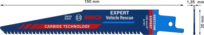 Schneiden von modernem Automobilstahl! Erster Zahn ermöglicht Tauchschnitte. Bei Rettungsarbeiten an Fahrzeugen kann das schnelle Eindringen in ein Auto über Leben und Tod entscheiden. Rettungsdienste setzen zunehmend Säbelsägen als wertvolles Rettungswerkzeug ein. Sie brauchen jedoch ein wirklich gutes Sägeblatt, das modernen Automobilstahl zuverlässig durchschneiden kann. Das EXPERT ‘Vehicle Rescue’ ist für diese wichtige Aufgabe ausgelegt. Das mit der Bosch Carbide Technology gefertigte Bosch EXPERT ‘Vehicle Rescue’ Säbelsägeblatt schneidet moderne Fahrzeuge schnell und zuverlässig – und hilft dir, Leben zu retten. Überragende Lebensdauer dank Bosch Carbide Technology.