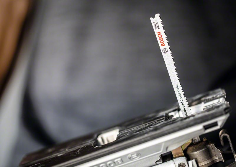 Hohe Präzision für ausrissfreies Schneiden von laminierten Arbeitsplatten! Bi-Metall Blatt: Kombiniert harte Zähne mit flexiblem Blattkörper. Unter Tischlern und Schreinern war es schon immer eine Kunst sicherzustellen, dass der sichtbare Teil des Arbeitsmaterials die „saubere Seite“ eines Stichsägenschnitts zeigt. Manchmal muss man das Werkstück zum Sägen umdrehen oder sägt von der Unterseite, um die gewünschte Schnittqualität auf der Sichtseite zu haben. Oder du verwendest das EXPERT ‘Hardwood 2-side clean’, welches dank seiner Zahngeometrie auf beiden Seiten einen perfekten, ausrissfreien Schnitt bietet. Hergestellt aus Bi-Metall – einer Leiste aus Schnellarbeitsstahl, die auf ein flexibles Stahlblatt geschweisst wird, um Festigkeit und Flexibilität zu kombinieren – ist das Bosch EXPERT 'Hardwood 2-side clean' Stichsägeblatt robust genug um beschichtete Küchenplatten aus Grobspanplatten oder Hartholz zu schneiden. Erhältlich für ausrissfreie gerade Schnitte (T308BF) und für besonders genaue ausrissfreie Winkelschnitte (T308BFP) Ausrissfreie Schnitte mit 2-side Clean Geometry.