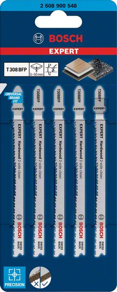 EXPERT ‘Hardwood 2-side clean’ T 308 BFP Stichsägeblatt, 5 Stück. Für Stichsägen 2608900548