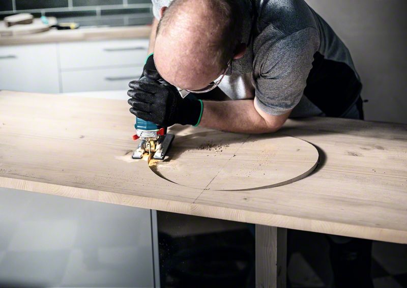 Hochpräzises, ausrissfreies Schneiden von Holz! Extrascharfe Zähne durch Präzisionsschliff. Unter Tischlern und Schreinern war es schon immer eine Kunst sicherzustellen, dass der sichtbare Teil des Arbeitsmaterials die „saubere Seite“ eines Stichsägenschnitts zeigt. Manchmal muss man das Werkstück zum Sägen umdrehen oder sägt von der Unterseite, um die gewünschte Schnittqualität auf der Sichtseite zu haben. Oder du verwendest das EXPERT ‘Wood 2-side clean’, welches dank seiner Zahngeometrie auf beiden Seiten einen perfekten, ausrissfreien Schnitt bietet. Mit seinen besonders scharfen, präzisionsgeschliffenen Zähnen eignet sich das Bosch EXPERT ‘Wood 2-side clean’ Stichsägeblatt gut zum Schneiden von Weichholz mit einer Dicke von bis zu 50 mm. Möbelschreiner können ein perfektes Ergebnis erzielen und verlieren nicht nach jedem Stichsägenschnitt Zeit durch Schleifen. Erhältlich für gerade Schnitte (T308B), für Kurvenschnitte (T308BO) und für genaue Winkelschnitte (T308BP) Ausrissfreie Schnitte mit 2-side Clean Geometry.