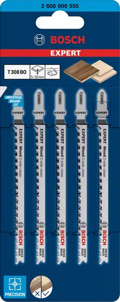 EXPERT ‘Wood 2-side clean’ T 308 BO Stichsägeblatt, 5 Stück. Für Stichsägen 2608900555