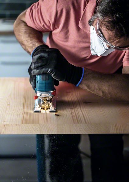 Hochpräzises, ausrissfreies Schneiden von Holz! Extrascharfe Zähne durch Präzisionsschliff. Unter Tischlern und Schreinern war es schon immer eine Kunst sicherzustellen, dass der sichtbare Teil des Arbeitsmaterials die „saubere Seite“ eines Stichsägenschnitts zeigt. Manchmal muss man das Werkstück zum Sägen umdrehen oder sägt von der Unterseite, um die gewünschte Schnittqualität auf der Sichtseite zu haben. Oder du verwendest das EXPERT ‘Wood 2-side clean’, welches dank seiner Zahngeometrie auf beiden Seiten einen perfekten, ausrissfreien Schnitt bietet. Mit seinen besonders scharfen, präzisionsgeschliffenen Zähnen eignet sich das Bosch EXPERT ‘Wood 2-side clean’ Stichsägeblatt gut zum Schneiden von Weichholz mit einer Dicke von bis zu 50 mm. Möbelschreiner können ein perfektes Ergebnis erzielen und verlieren nicht nach jedem Stichsägenschnitt Zeit durch Schleifen. Erhältlich für gerade Schnitte (T308B), für Kurvenschnitte (T308BO) und für genaue Winkelschnitte (T308BP) Ausrissfreie Schnitte mit 2-side Clean Geometry.