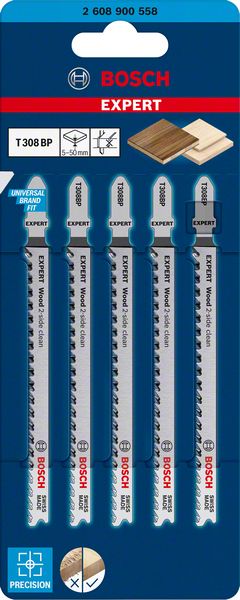EXPERT ‘Wood 2-side clean’ T 308 BP Stichsägeblatt, 5 Stück. Für Stichsägen 2608900558