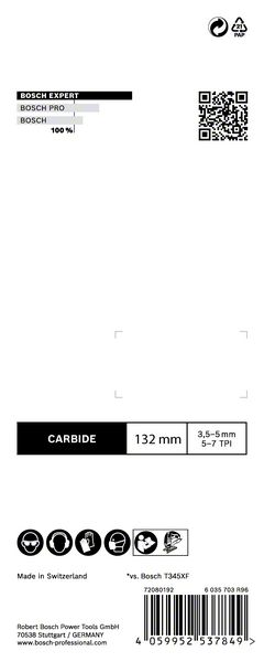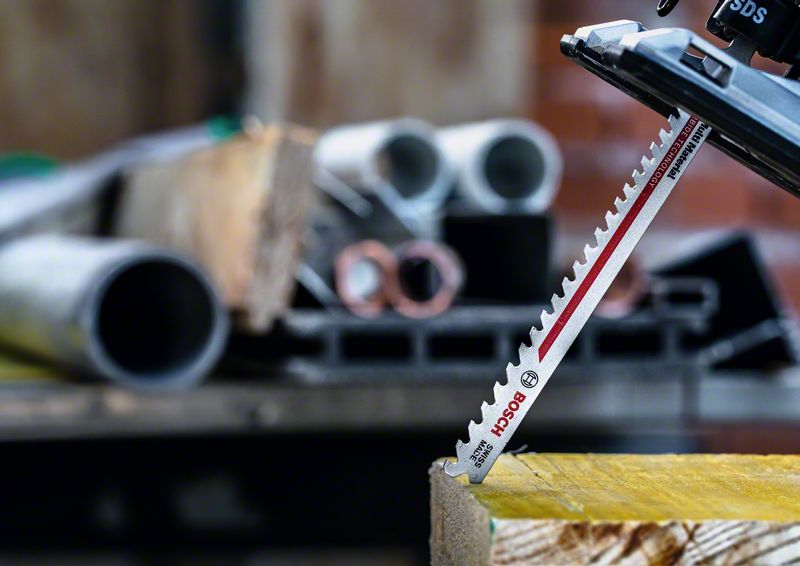 Herausragende Lebensdauer in verschiedensten Baustoffen! Progressive Zahnteilung zum Trennen von Material jeder Dicke. Du benötigst ein Blatt, auf das du dich verlassen kannst. Ein Stichsägeblatt, das mit Bauholz mit eingebetteten Metallteilen umgehen kann. Oder mit Faserplatten. Oder auch mit harten Schrauben. Das EXPERT ‘Multi Material’ kann mühelos in mehreren Materialien eingesetzt werden und schneidet selbst dann noch, wenn andere Stichsägeblätter bereits verschlissen wären. Das Bosch EXPERT ‘Multi Material’ Stichsägeblatt kann die härtesten Holzwerkstoffe mit eingebettetem Metall und andere zähe Baumaterialien schneiden. Auf dieses Blatt kannst du dich verlassen. Überragende Lebensdauer dank Bosch Carbide Technology.