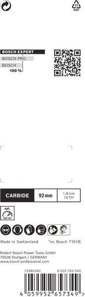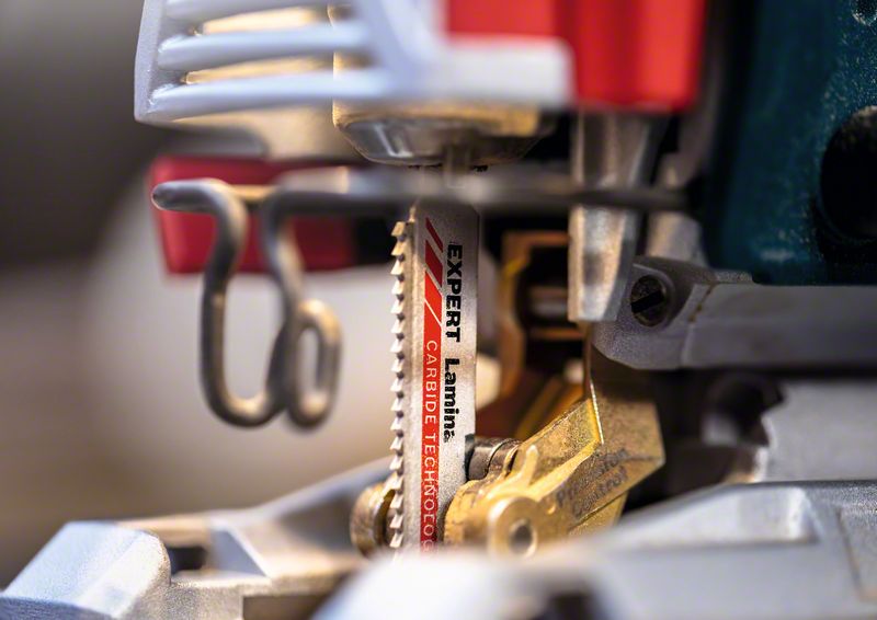 Hohe Lebensdauer bei sauberen Schnitten in Laminat! Carbide-Leiste bietet Steifigkeit und Festigkeit. Wenn du Laminatböden oder HPL-Verkleidungen verlegst, möchtest du mit deiner Stichsäge einen sauberen Schnitt machen. Das Material ist aber so abrasiv, dass normale Blätter schnell stumpf werden und keine Leistung mehr bringen. Das EXPERT 'Laminate Clean' kombiniert die Carbide Technology mit entgegengerichteten Zähnen, für saubere Schnitte und eine hervorragende Lebensdauer. The Bosch EXPERT ‘Laminate Clean’ Stichsägeblatt ist ein leistungsstarkes Blatt für Laminatarbeiten. Aufgrund seiner sehr langen Lebensdauer ist es auch die erste Wahl für Profis, die kein Geld mehr für Stichsägeblätter verschwenden möchten, die nicht lange halten. Überragende Lebensdauer dank Bosch Carbide Technology.