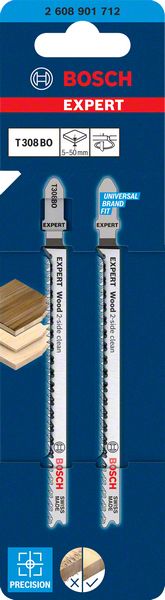 EXPERT 'Wood 2-side clean' T 308 BO Stichsägeblatt, 2 Stück 2608901712