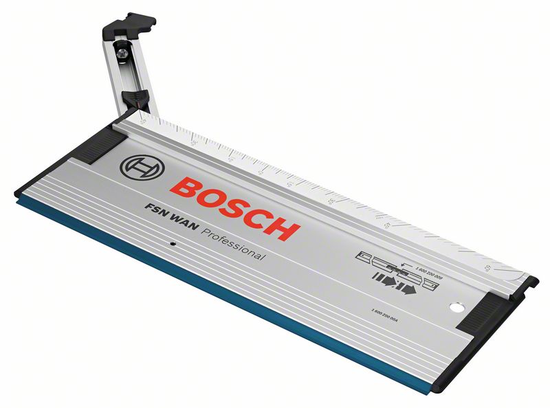 Systemzubehör FSN WAN (Winkelanschlag), Der Winkelanschlag FSN WAN Professional für Führungsschienen fixiert solche fest auf dem Werkstück und ermöglicht schnelle und präzise Winkelschnitte. Er lässt sich intuitiv einstellen sowie bedienen und verfügt über eine Gradskala für eine schnelle Positionierung. Der qualitativ hochwertige Winkelanschlag sorgt für genaue Ergebnisse und lässt sich mit dem Verbindungselement FSN VEL perfekt mit der Führungsschiene verbinden. Er eignet sich für genaue geführte Winkelschnitte mit Bosch FSN Führungsschienen. Dieses Werkzeug ist mit Bosch Führungsschienensystemen kompatibel.