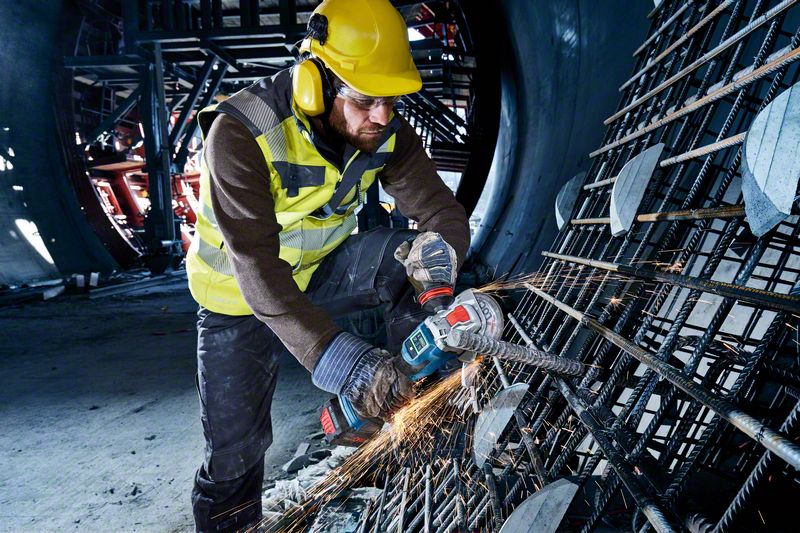Akku-Winkelschleifer BITURBO mit X-LOCK GWX 18V-15 SC, Der GWX 18V-15 SC Professional ist der leistungsstarke Akku-Schleifer von Bosch in der 18V-Kategorie mit Leistungskapazität für industrielle Anwendungen. Dank seines starken, umfassend für die ProCORE18V-Akkutechnologie optimierten bürstenlosen Motors stellt er eine Akkuleistung entsprechend der Leistungsstärke eines kabelgebundenen Geräts mit 1.500 W bereit. Dieser kleine Winkelschleifer wird mit einem schlüssellosen X-LOCK-Klicksystem ausgeliefert, das einen schnellen und bequemen Zubehörwechsel ermöglicht. Das Werkzeug kann mit einem optionalen Bluetooth Connectivity-Modul nachgerüstet werden. Ausgestattet mit KickBack Control, Drop Control, dem intelligenten schnellen -ZollX-Brake-Zoll System und einer werkzeuglosen Schnellspannmutter bietet dieser Schleifer eine umfassende Werkzeugführung. Ist geeignet zum Abschleifen und Trennen von Metall. Ist kompatibel mit allen Bosch Professional 18V-Akkus und -Ladegeräten (Professional 18V System) – maximale Leistung mit ProCORE18V = 5,5 Ah – sowie mit den Staubabsaugvorrichtungen GDE 115/125 FC-T Professional und GDE 125 EA-T Professional. Der GWX 18V-15 SC Professional zeichnet sich zudem durch konstante Drehzahl, Überlastschutz, eine schlüssellose Schutzhaube, Wiederanlaufschutz, Sanftanlauf und Vibration Control aus. Schutzhaube (1 605 510 365); Zusatzhandgriff Vibration Control (2 602 025 171); L-BOXX 136 (1 600 A01 2G0); 1/1 L-BOXX-Einlage für Gerät und Ladegerät (1 600 A01 166); 1 x Bluetooth Low Energy Modul GCY 42 Professional (1 600 A01 3WF)