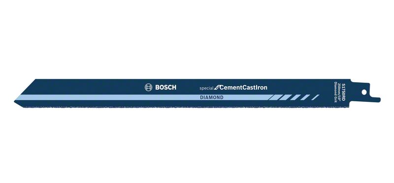 Das S 1750 RD Special für CementCastIron ist die einzige Blatt von Bosch auf dem Markt, das Rohre aus zementiertem Gusseisen schneiden kann. Die feine Diamantbesatz mit Körnung 50 ist auf das Blatt geschweißt und sorgt für eine besonders lange Lebensdauer. Er macht als einzige Säbelsystemlösung das Schneiden von zementiertem Gusseisen möglich. Der 1,25 mm dicke Körper und die Schnittleistung von 250 mm bieten die optimale Stabilität und Festigkeit, die für Schnitte in Rohre mit einem Durchmesser von bis zu 200 mm erforderlich sind.