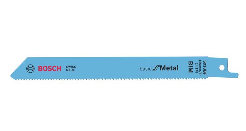 Das S 918 BF Basic for Metal Säbelsägeblatt eignet sich für Schnitte in Metall. Die gefrästen, geschränkten Zähne ermöglichen Schnitte ohne besondere Anforderungen. Zudem bietet das Blatt aus Bimetall beim Schneiden von Stahl mit normaler Stärke eine hohe Belastbarkeit. Es ist mit einer feinen Zahnteilung von 1,8 mm für das Schneiden von Rohren und Profilen mit einer Wanddicke von 2–8 mm ausgestattet. Zudem ermöglicht die Standardlänge des Blatts von 150 mm eine Schnittleistung von bis zu 100 mm.