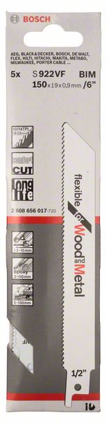 Säbelsägeblatt S 922 VF, Flexible for Wood and Metal, 5er-Pack Säbelsägeblatt S 922 VF