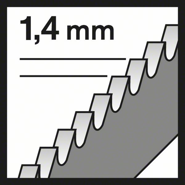 Das T 118 EFS Basic for Stainless Steel Stichsägeblatt macht gerade Schnitte in Metall. Die gefräste, gewellte Zahngeometrie ist zum Schneiden von Edelstahl konzipiert. Die Zahnleiste aus gehärtetem speziellem HSS (Hochgeschwindigkeitsstahl) und BIM (Bimetall) ist mit hochelastischem HCS (Kohlenstoffstahl) verstärkt und bietet sowohl genügend Festigkeit als auch Flexibilität, die beide erforderlich sind, um dünne, massive und perforierte Bleche aus Edelstahl zu schneiden. Die feine Zahnteilung (1,4 mm) schneidet zudem Metallbleche mit einer Dicke von 1,5-4 mm.